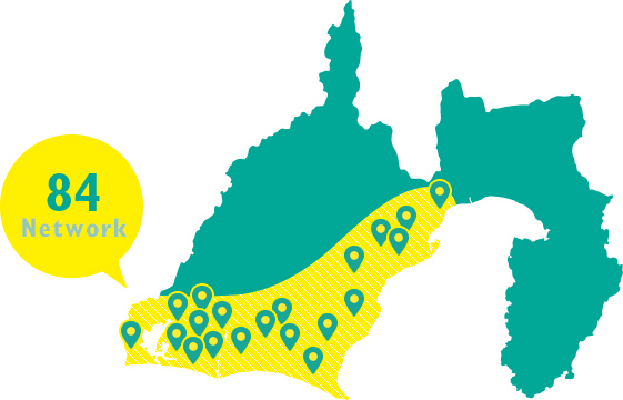 静岡県内に84店舗のネットワークを持ちます。